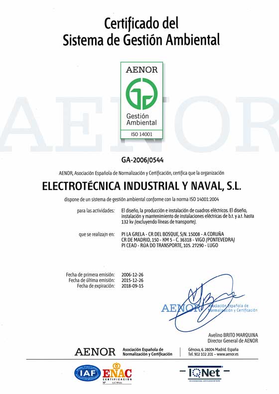 Desde el año 2006 ELINSA integra los requisitos de la Norma ISO 14001 en su sistema de gestión. El compromiso medioambiental de la empresa se desarrolla mediante procedimientos de control operacional y se establecen objetivos para disminuir los impactos ambientales.